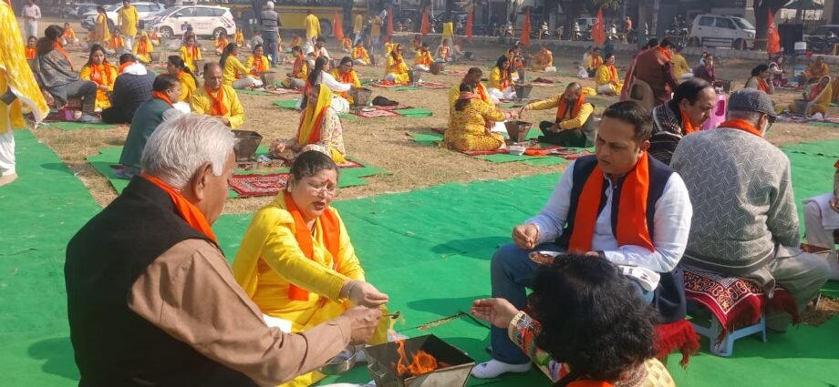 यमुनानगर ( राकेश भारतीय ) Dav मैनेजिंग कमेटी दिल्ली के अध्यक्ष पदमश्री डॉ पूनम सूरी के मार्गदर्शन व आर्य युवा समाज के राष्ट्रीय अध्यक्ष श्री योगी सूरी के नेतृत्व में देशव्यापी नो नशा कैंपेन के तहत नशामुक्त समाज बनाने के उद्देश्य से डीएवी गर्ल्स कॉलेज की ओर से दशहरा ग्राउंड में 100 कुंडीय हवन यज्ञ का आयोजन किया गया। जिसमें यमुनानगर विधायक घनश्याम दास अरोड़ा ने बतौर मुख्य अतिथि शिरकत की। जबकि डीएसपी कवंलजीत, डीएवी यूनिवर्सिटी जालंधर की पूर्व रजिस्ट्रार डॉ सुषमा आर्य, पार्षद विभोर पाहूूजा विशिष्ट अतिथि रहें। कॉलेज की कार्यवाहक प्रिंसिपल डॉ सुरिंद्र कौर ने सभी का स्वागत किया। इसके बाद सभी ने नशे से होने वाले शारीरिक, मानसिक एवं सामाजिक नुकसानों को दर्शाने के लिए लगाई गई चित्र प्रदर्शनी का अवलोकन भी किया।